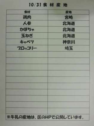 10/31(金) 給食(食材産地)