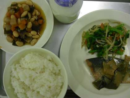 ご飯 牛乳 さばの味噌煮 おひたし 五目豆
