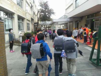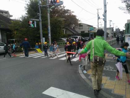 今日は土曜日なので、おやじの会のお父さん方、PTAの方々が安全指導に立ってくださっています。