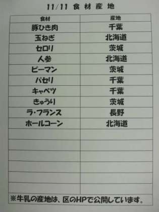 11/11(火) 給食(食材産地)