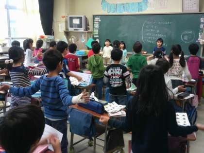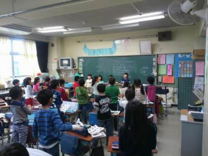 動作を大きくという先生の指示で子どもたちは伸びやかに表現します。