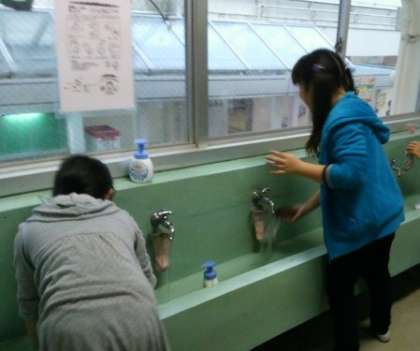 ほうきを使うのがとても上手な児童がいたり、冷たい水にめげることなく手洗い場のそうじをする児童がいたりします。