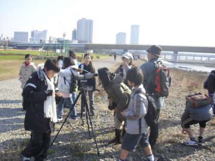 12月17日(木)4年生は、多摩川兵庫島までバードウォッチングに行ってきました。8つのグループに分かれ、せたがやトラスト街づくりの野鳥ボランティアの方々の説明を聞きながら観察をしていきました。カワセミ、アオサギ、ヒヨドリ、ハクセキレイ、メジロ、ユリカモメなどをはじめ、約15種類もの野鳥を観察することができました。カワセミが、枝先から水面へダイブをする貴重な瞬間を見られた子どもたちからは、歓声があがりました。このバードウォッチングを経験したことにより、どこからか聞こえてくる鳥のさえずりに耳を傾け、木から木へとえさを求め羽ばたく鳥の姿などに目を向けるようになるのではないでしょうか。最後になりましたが、寒い中、バードウォッチングに付き添っていただいた保護者の皆様ありがとうございました。