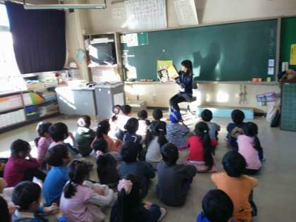 読み聞かせのボランティアの方が1年生教室に来てくださっていました。