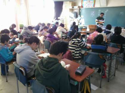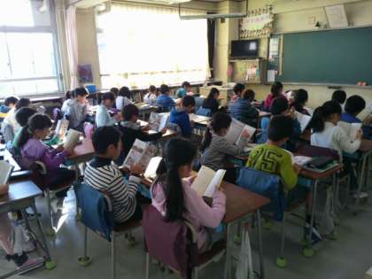 中学年や高学年のクラスでは、静かに本を読んでいました。
