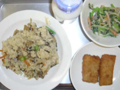 五目ご飯 牛乳 いかのかりん揚げ 野菜のごまみそがけ