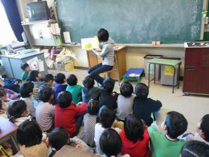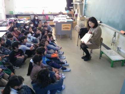 読み聞かせのボランティアの方が、2・3・4年生の教室に来てくださっていました。