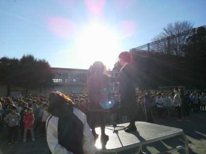 号令台の上でみんなうれしそうでした。