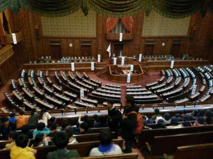 国会議事堂の中です。厳かな雰囲気にみんな少し緊張して静かに見学しています。メモをとりながら、熱心です。