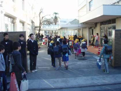 本校の子どもたちといっしょに寒い中、気持ちのよいあいさつをしていました。