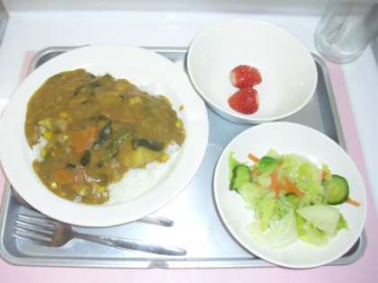 ポパイカレーライス 牛乳 野菜の甘酢かけ いちご