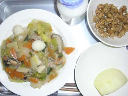 中華丼 牛乳 大豆とじゃこの甘辛揚げ りんご