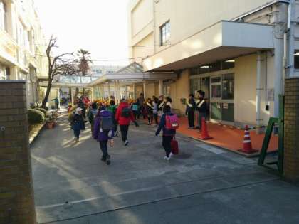登校してくる子どもたちからも元気なあいさつが返ってきました。
