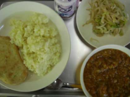 ☆今日は手作りのナンでした。のばし棒がなかったので、家庭科室からすりこぎを借りてきて、代用しました。また、発酵させる時間はないため、代わりにベーキングパウダーを入れました。ミキサーにかけたほうれん草も入れて、淡い若草色が出るようにしました。少しかたくなってしまいましたが、子どもたちは喜んでくれたようです。