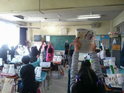 その後、教科書に載っている歌の歌詞を読み取って、
