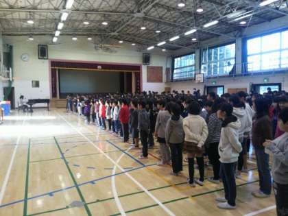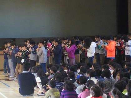 6年生がカノンを演奏し、その曲といっしょに歌います。