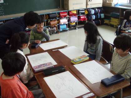 2人で話し合った後、グループでも発表しあいます。思考のツールを低学年から使うことで、考えたことや出来事を分類したり、項目立てたりする力が身につきます。