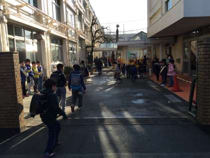 3・5年生の当番の子どもたちが元気いっぱいのあいさつをしていました。