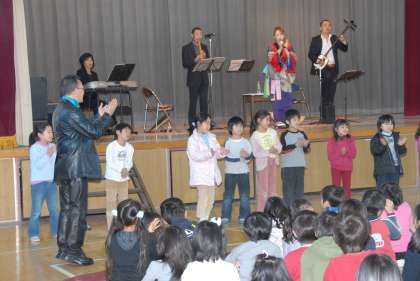 午後は、「南中ソーラン」でも有名な民謡歌手の伊藤多喜雄さん率いるTAKIO BANDの皆さんをお迎えして、体育館で「民謡鑑賞教室」が行われました。軽やかで時に激しい三味線や尺八の音や、それに併せて響く独特な歌声、しなやかで美しい踊りに、子どもたちは全身で感じ取り、手拍子をしたり体を揺らしたりしながら聞き入っていました。瀬田小学校の校歌をアレンジして演奏していただき、それに合わせて全校児童で歌ったり、ソーラン節を一緒に踊ったりしながら、とても楽しいひとときを過ごすことができました。子どもたちにとってすてきな思い出になったことでしょう。