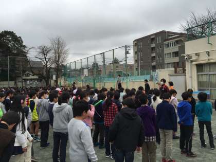 校長先生からは、70年前の東京大空襲、4年前の大震災の出来事から大切な命についてのお話がありました。