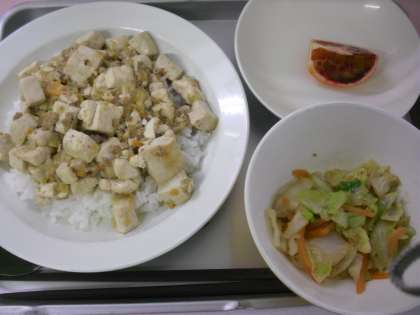 麻婆豆腐丼 牛乳 春キャベツのナムル ブラッドオレンジ