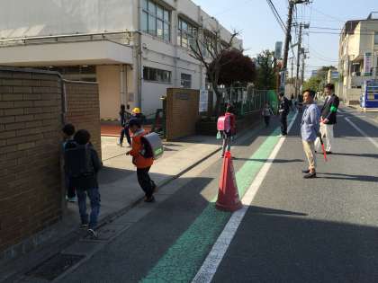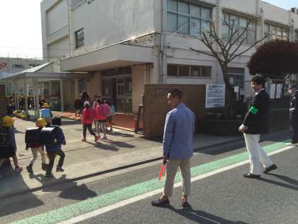 朝はおやじの会のみなさんが安全指導を行ってくださいました。