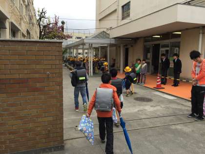 新年度、子どもたちのあいさつはとてもいいです。先輩である中学生といっしょに溌剌とあいさつすることができます。