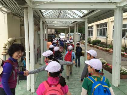 1・2年生は予定通り、砧公園に向けて、元気に出発しました。