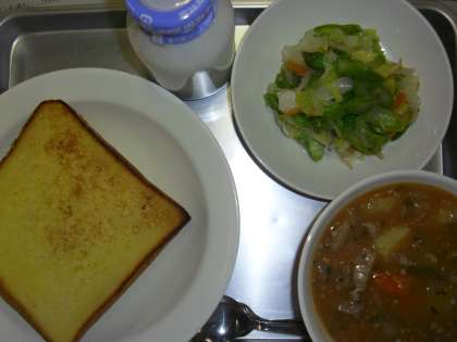 フレンチトースト 牛乳 ハンガリアンシチュー アスパラガスのサラダ