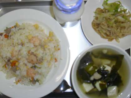 チャーハン 牛乳 わかめスープ 野菜の中華風味