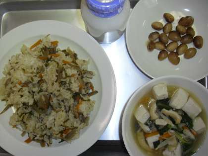 豚肉とごぼうのご飯 牛乳 吉野汁 煮豆