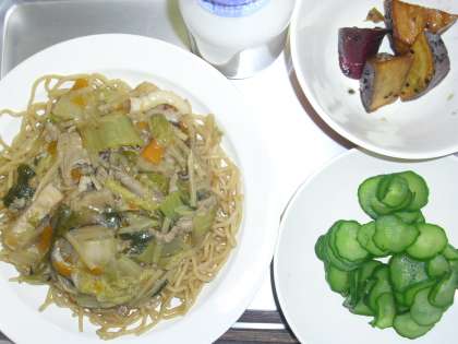 五目あんかけ焼きそば 牛乳 きゅうりのひとしお 大学芋