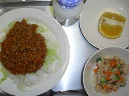 タコライス 牛乳 ビーンズサラダ 甘夏