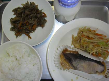 ご飯 牛乳 わらさの味噌マヨネーズ焼き おひたし きんぴらごぼう