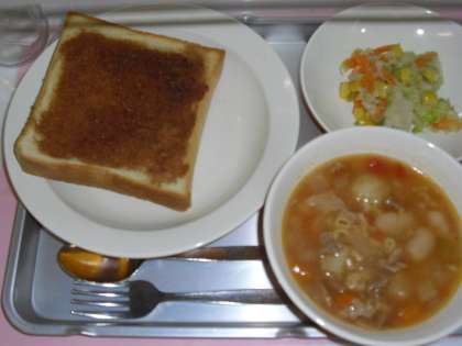 シナモントースト 牛乳 白いんげん豆入りミネストローネ コールスローサラダ