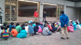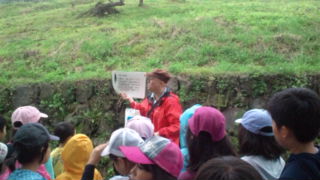 宿舎に、到着しました。みんな、元気いっぱいです。これから、里山入門です。吉沢さんの説明を、しっかり聞きます。