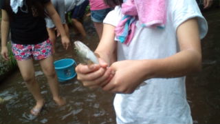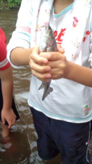 収穫したマスは、おやつに、いただきます。大切な命を、いただくことを、大西先生から、教えていただきました。