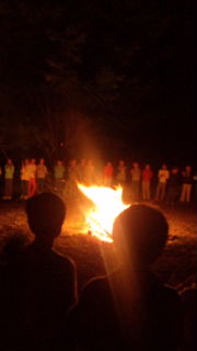 夕食も、終わり、これから、キャンプファイヤーです。盛りだくさんのプログラムも、終わりに近づいています。明日は、りんご園に行きます。