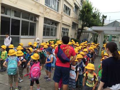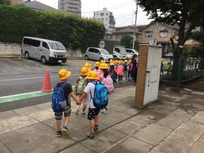 元気に「行ってきます!」を言って2列に並び、正門を出ました。