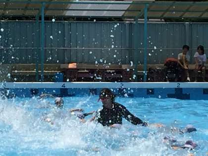 梅雨の晴れ間の今日、水泳指導を行いました。