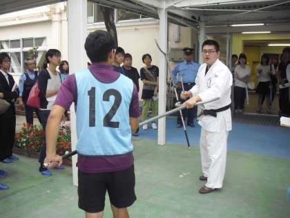 玉川警察の方から、サスマタの使い方や緊急時の対応の仕方について教えていただきました。