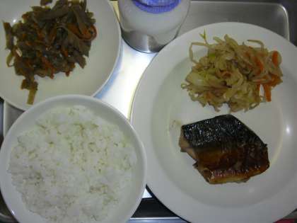 ご飯 牛乳 さばの七味焼き おひたし きんぴらごぼう