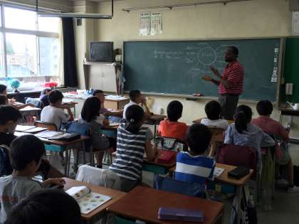 休み時間も子どもから声がかかるほど、人気がある先生です。
