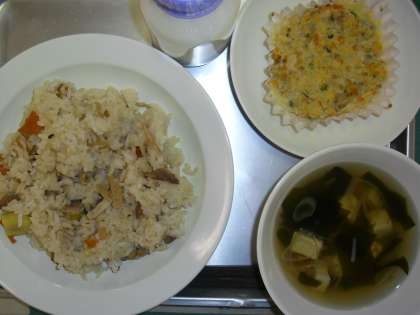 秋の香りご飯 牛乳 すまし汁 卵焼き