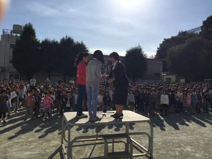 表彰は女子バレーボールチームです。世田谷区の大会で3位になりました。