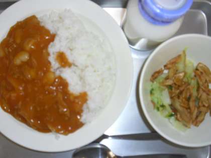 ハッシュドポークビーンズライス 牛乳 ごぼうチップサラダ