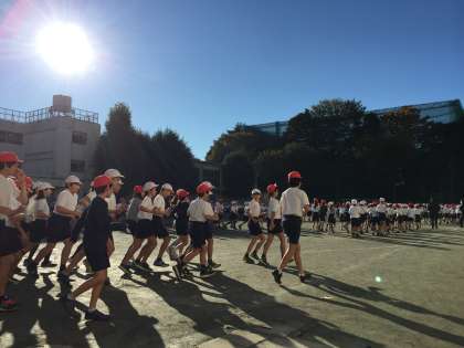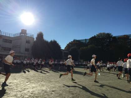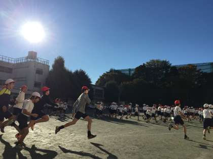 火曜日と木曜日の中休み、3分間校庭を走ります。
