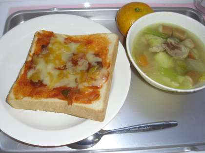 ピザトースト 牛乳 冬野菜のカレー風味ポトフ みかん
