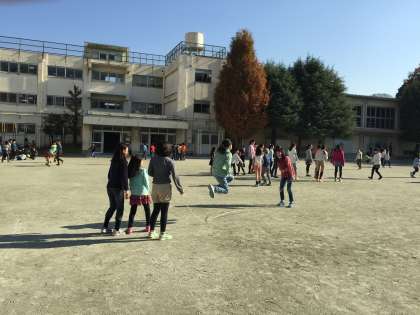長縄、短縄、ボール遊び、鬼ごっこ、様々な遊びで遊んでいます。