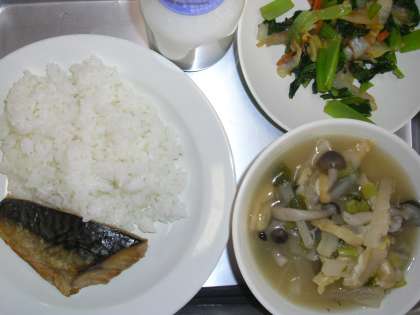 ご飯 牛乳 さばの塩焼き 野菜のおかか和え みそ汁